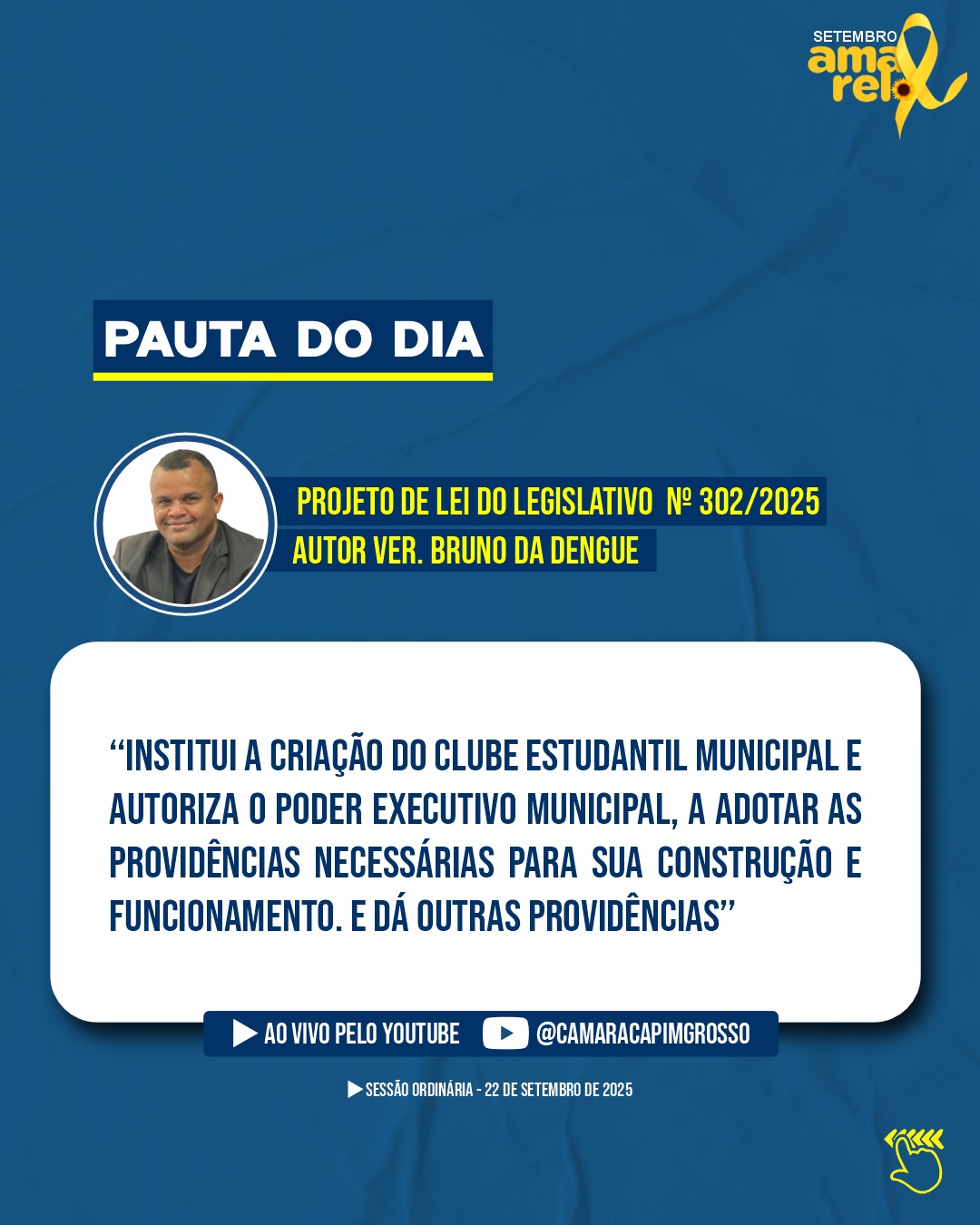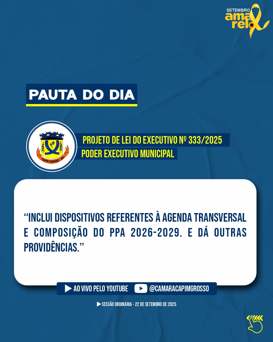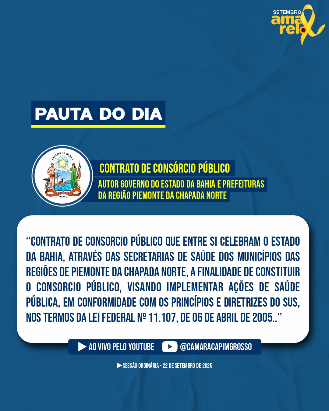 Venha acompanhar pessoalmente a sessão ou assista pelo nosso Canal Oficial do YouTube.