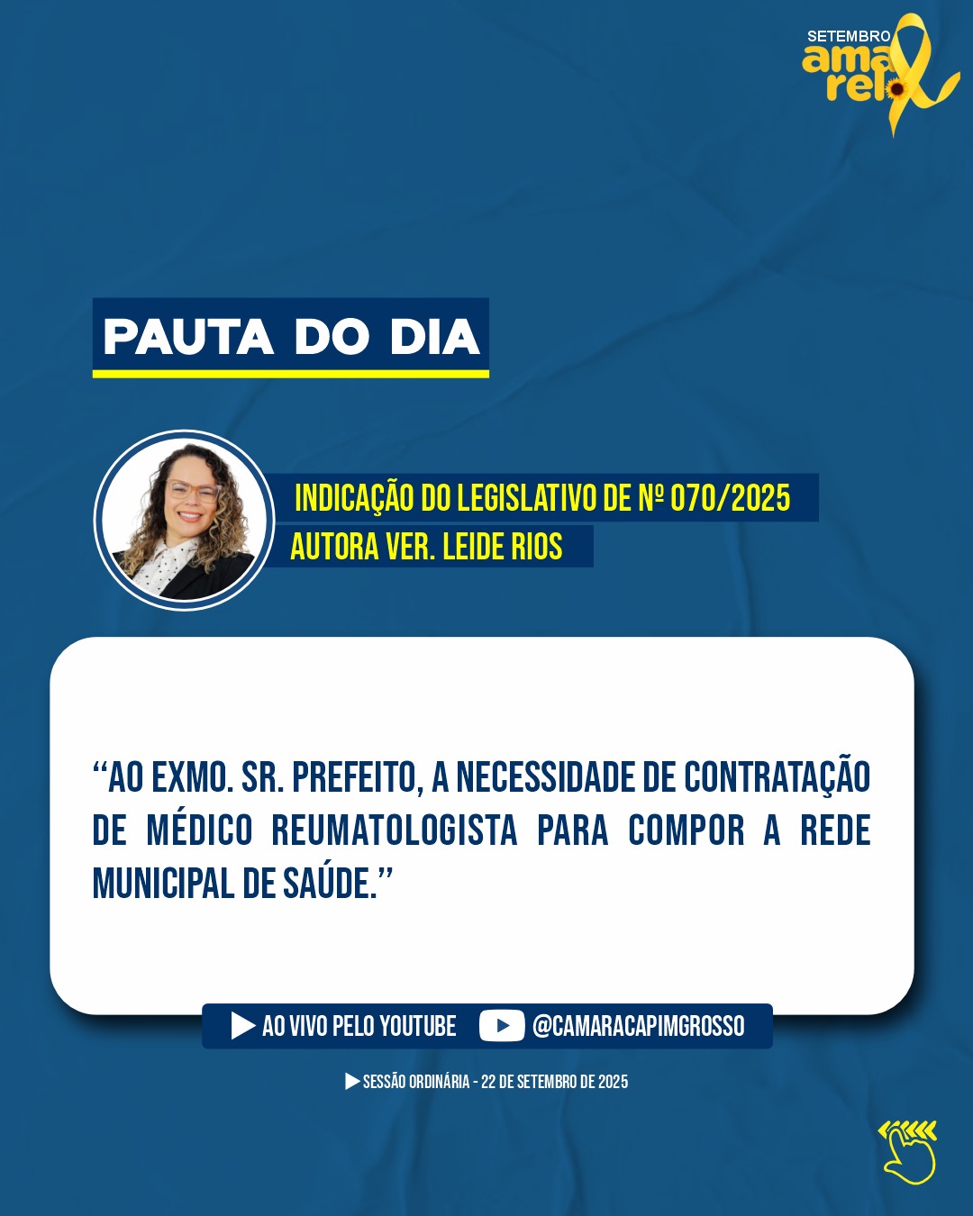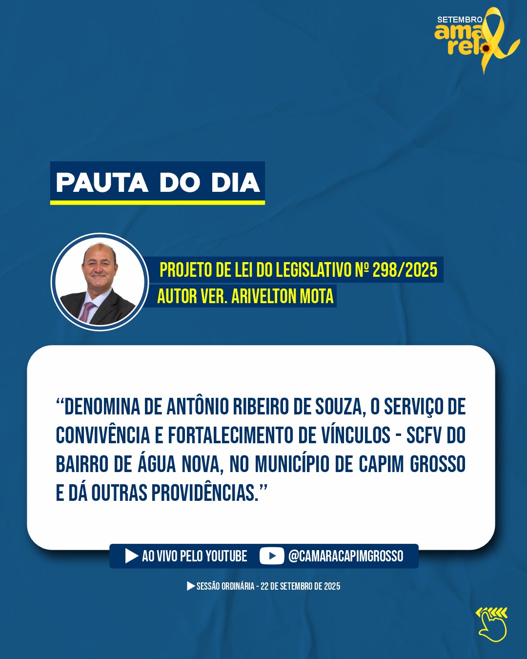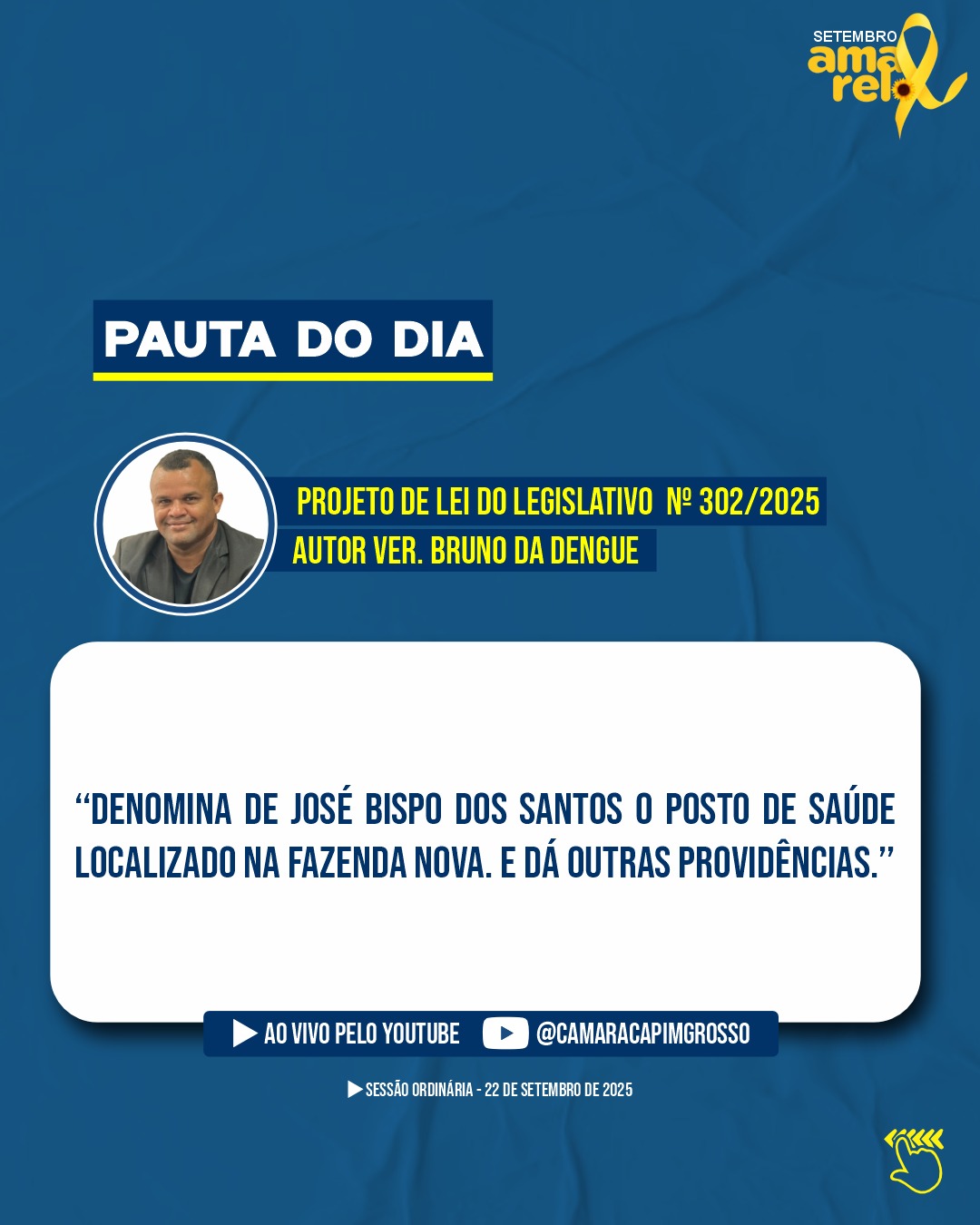 Venha acompanhar pessoalmente a sessão ou assista pelo nosso Canal Oficial do YouTube.
