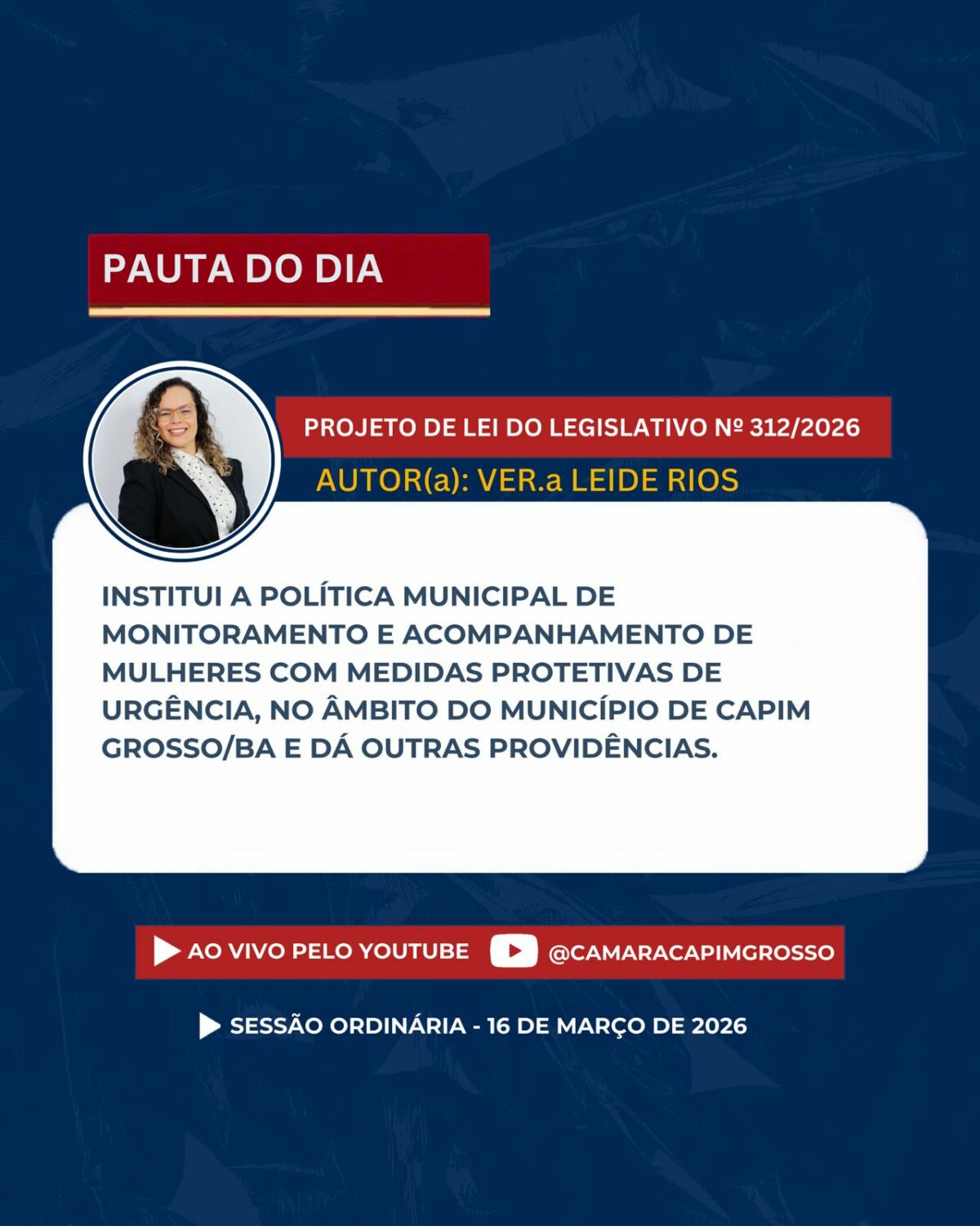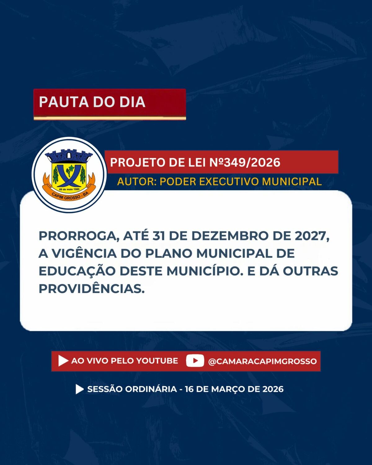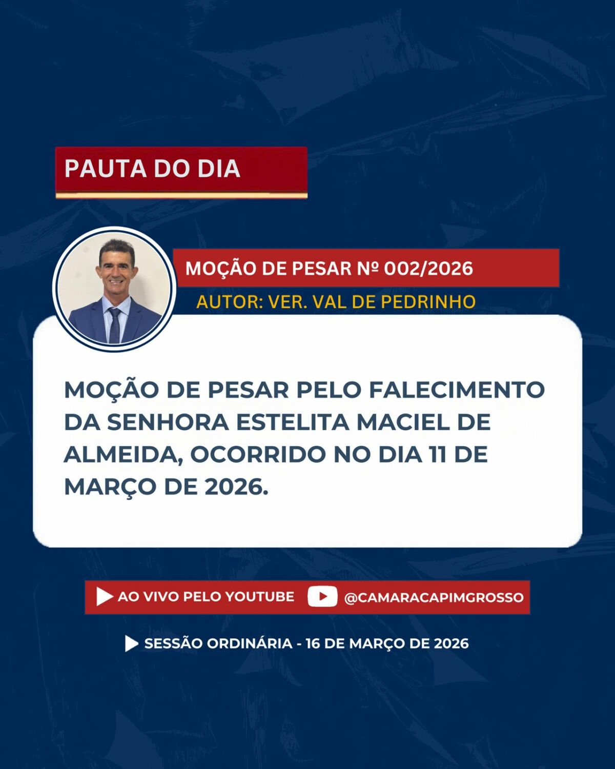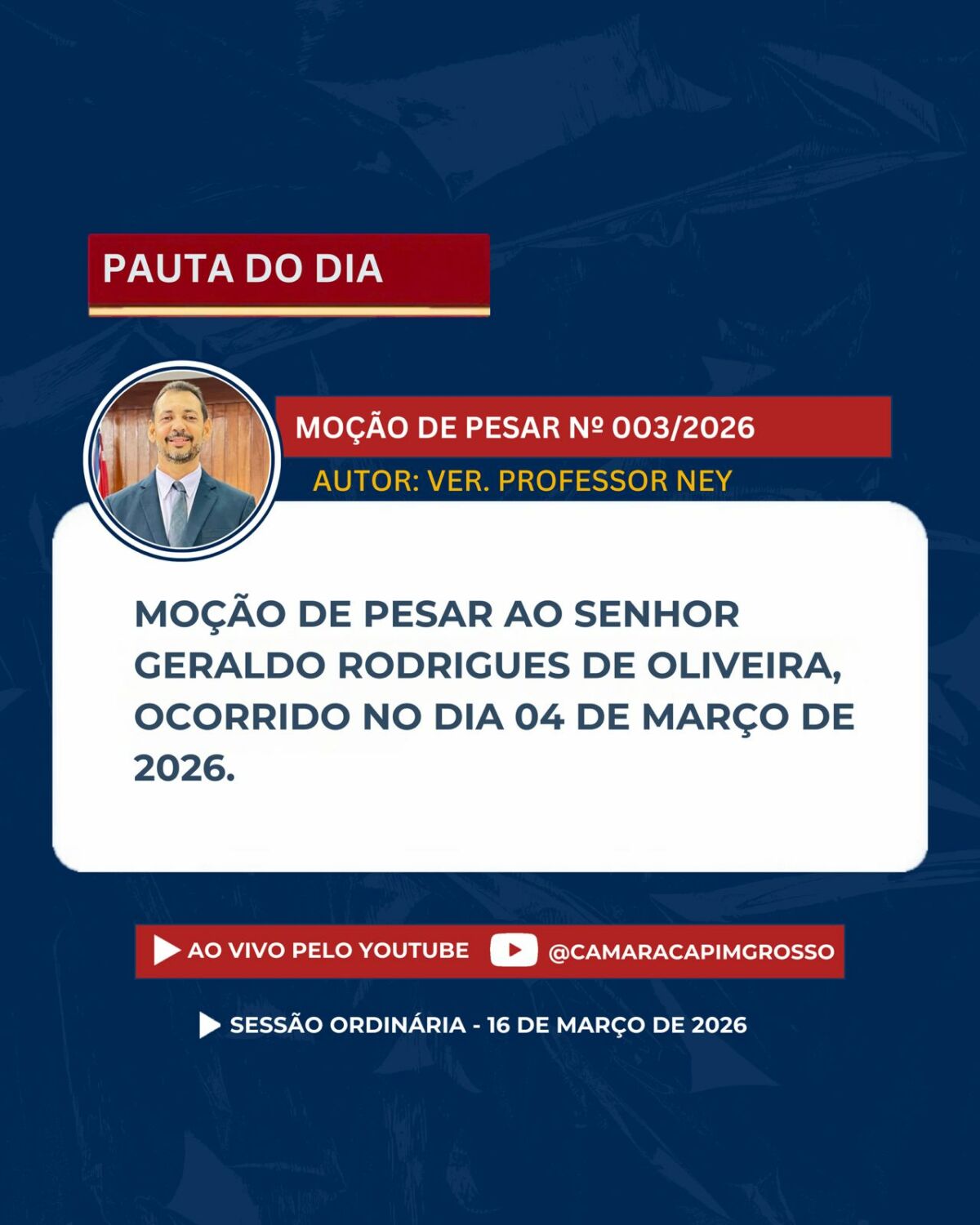 Se não puder comparecer presencialmente, acompanhe a transmissão ao vivo pelos nossos canais oficiais.