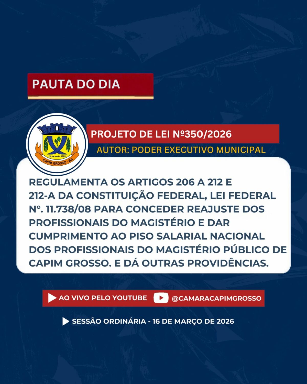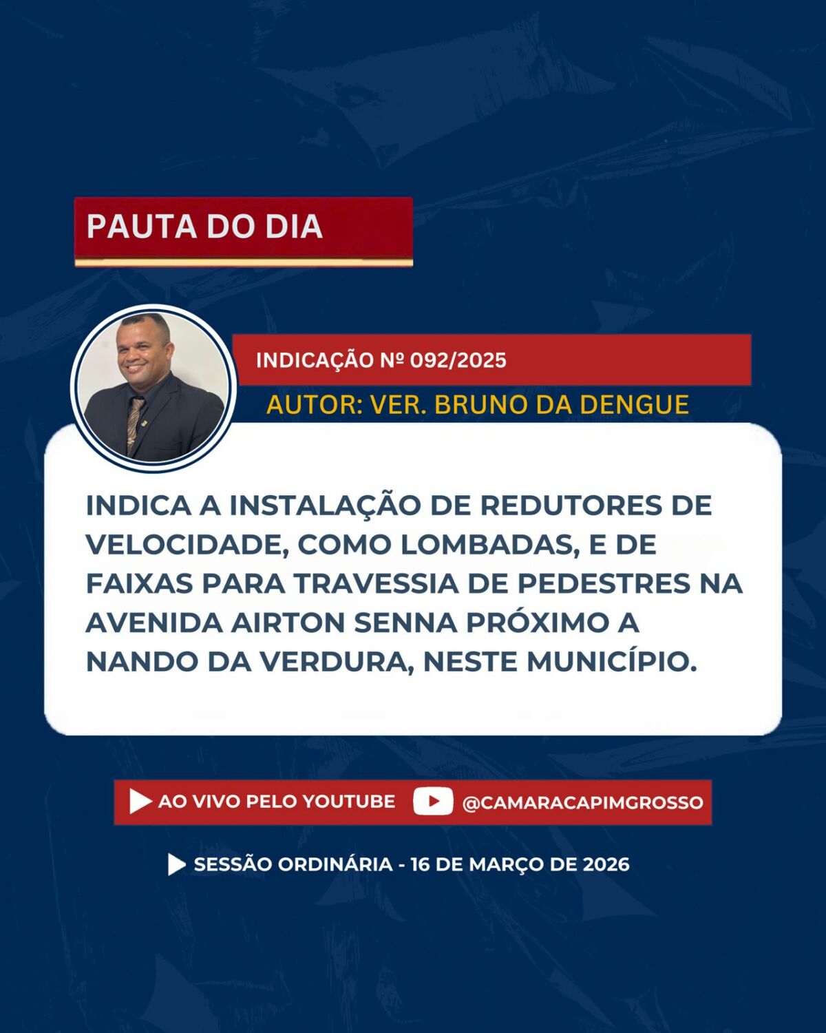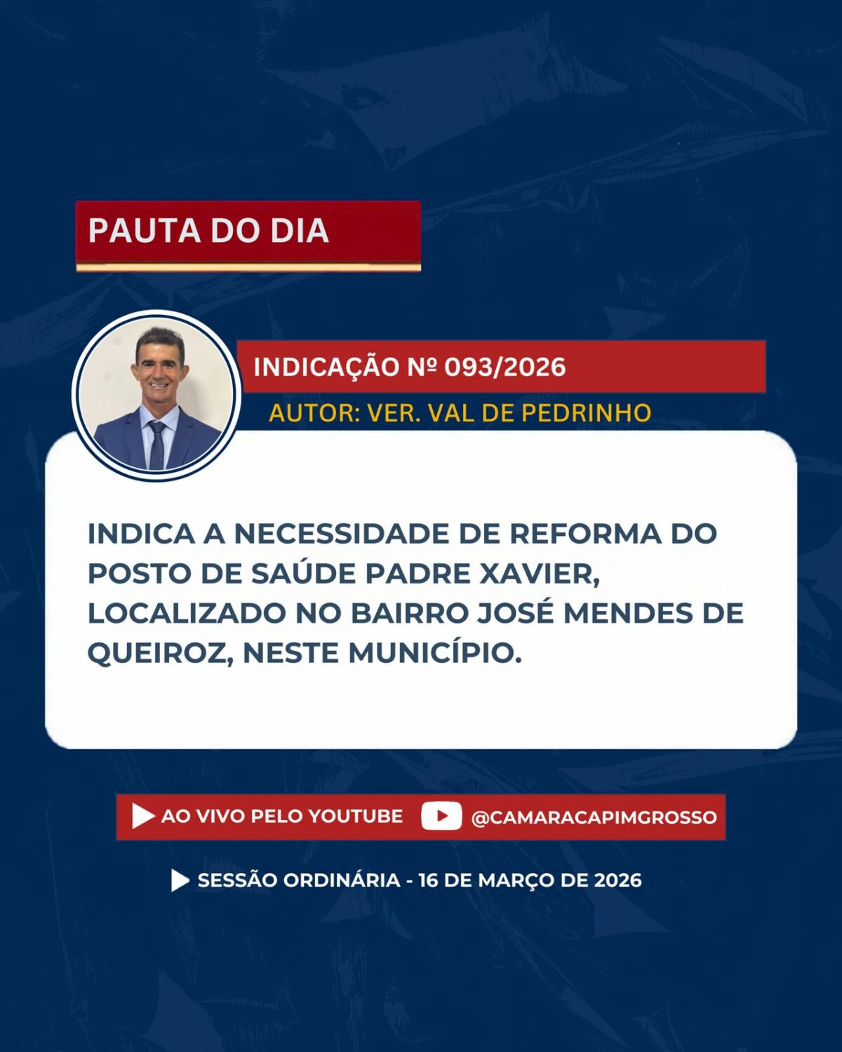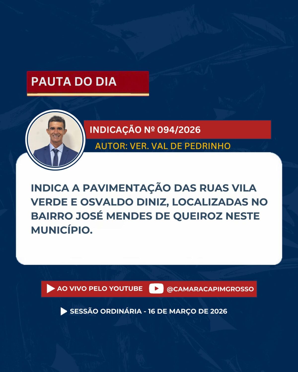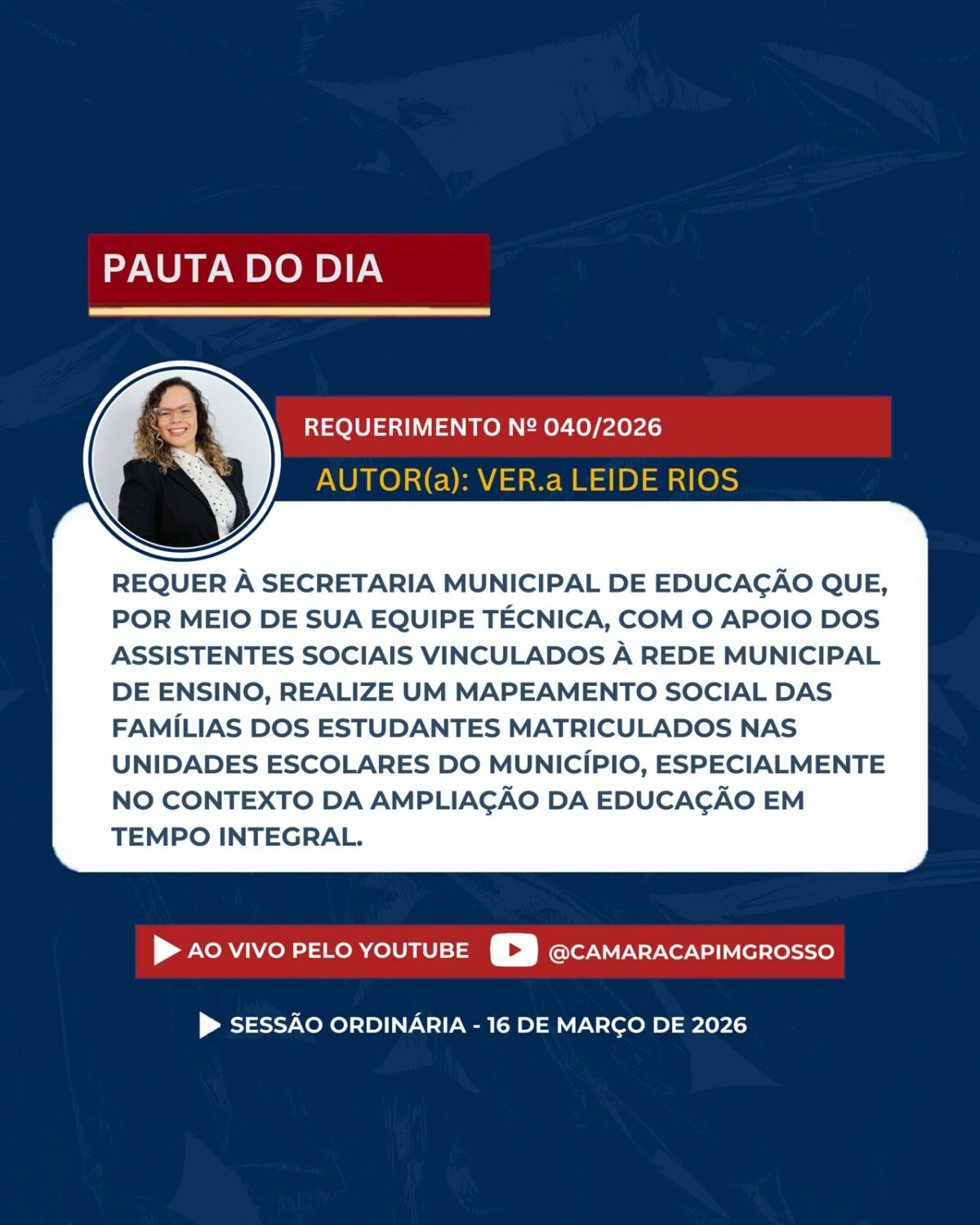 Se não puder comparecer presencialmente, acompanhe a transmissão ao vivo pelos nossos canais oficiais.