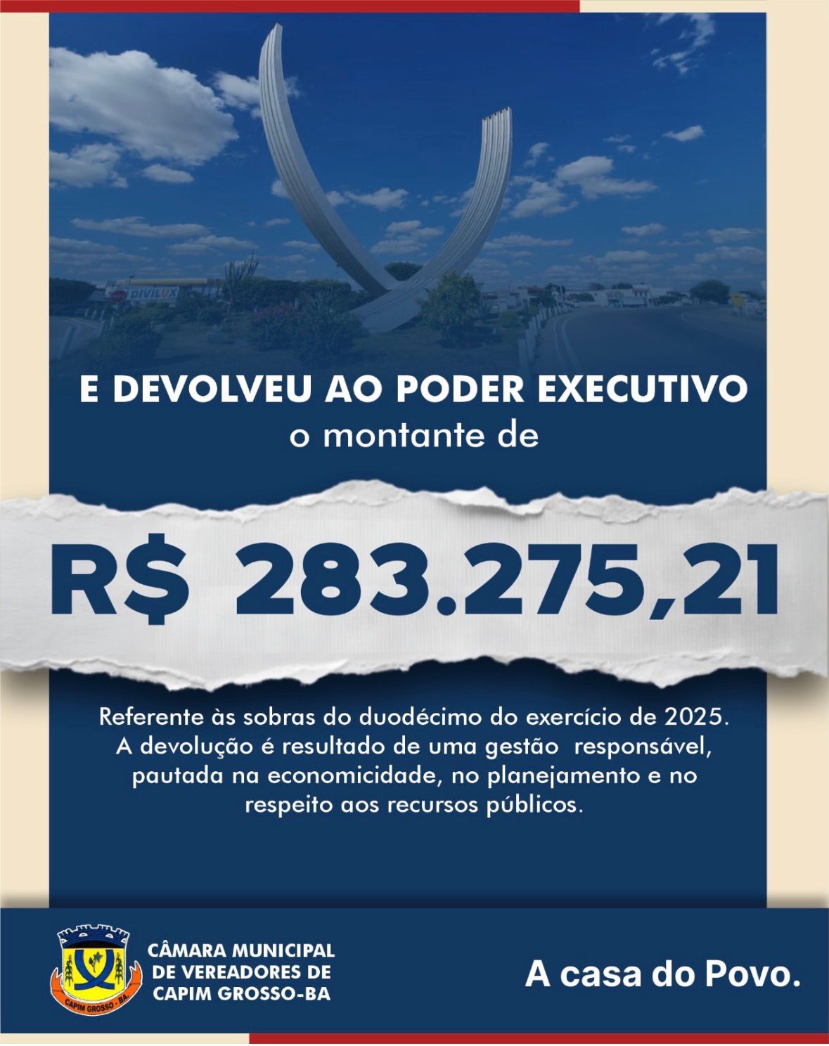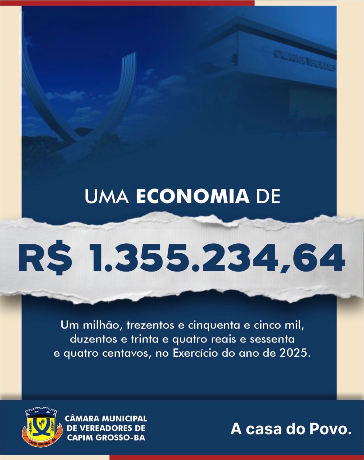 A Câmara Municipal de Capim Grosso presta contas à população e apresenta os números do exercício de 2025 com responsabilidade e respeito ao dinheiro público.