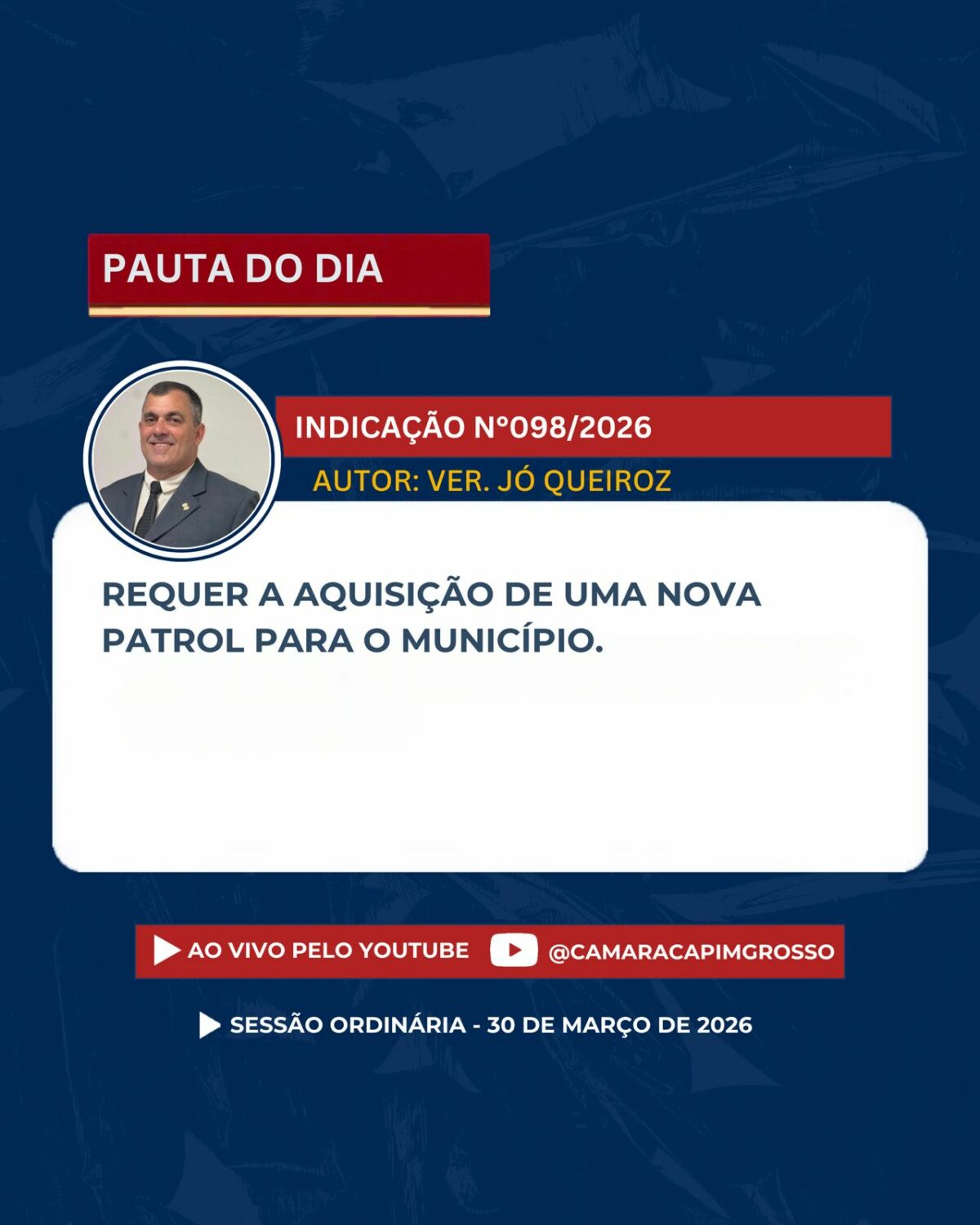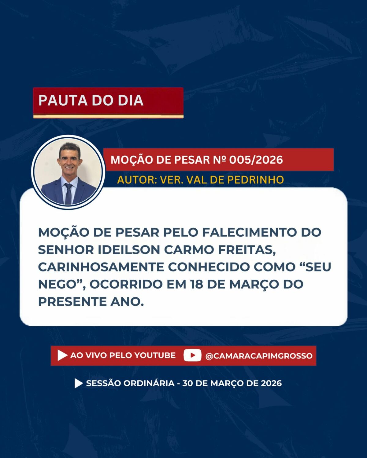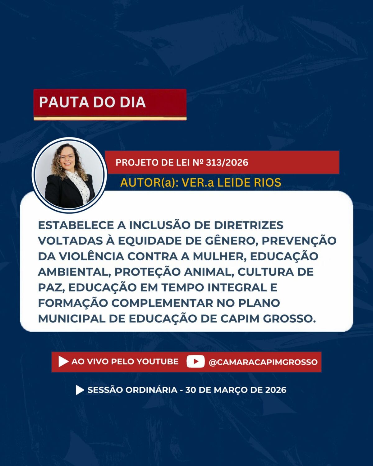 Acompanhe o que vai rolar na Câmara de Vereadores de Capim Grosso.