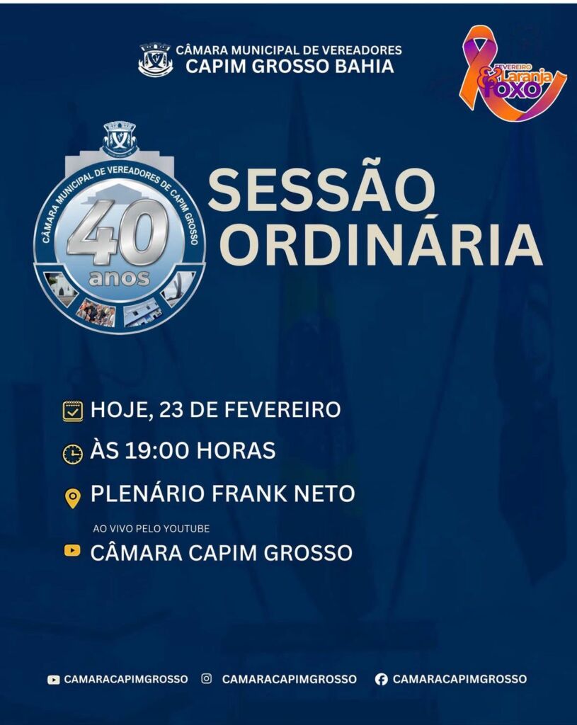 A Câmara de Vereadores segue firme no debate de pautas que impactam diretamente o presente e o futuro de Capim Grosso. Hoje, temas importantes entram em discussão no plenário, fortalecendo o compromisso com a transparência, o diálogo e decisões responsáveis em favor da nossa cidade. A democracia se constrói com participação. 📍 Acompanhe presencialmente no…